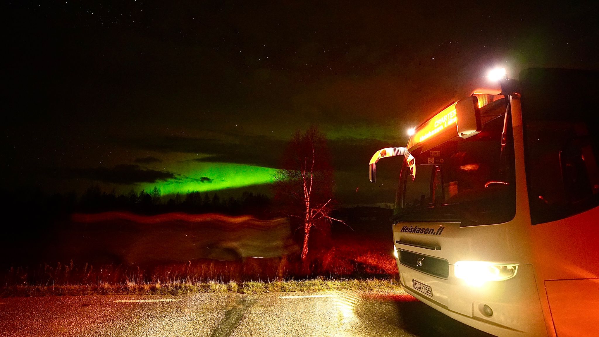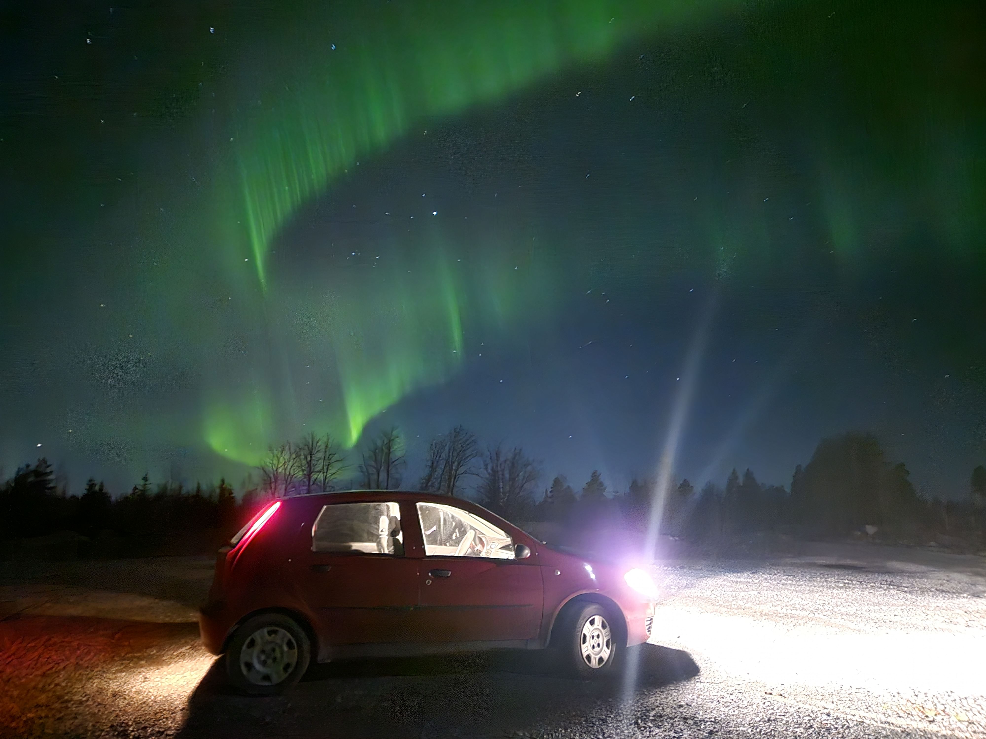 We also finetune the starting times and even recommend our customers to cancel with full refund those Chases when the chances are too low for catching the Greens. We have over 30 Aurora stations and visual control over Oulu and Sea Lapland region so we can drive there where the open sky is available. On the Chase we drive the Auroras even whole night if there is still chances of seeing them.